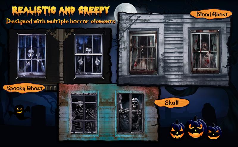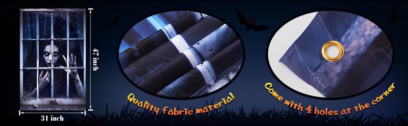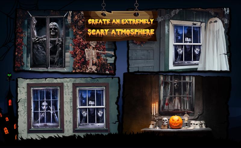 You will receive 2 pcs scary Halloween curtains, put them on the window, look like they are climbing out the window to grab you, can easily set a horror mood for Halloween theme party!!!